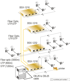 configuration allows multiple terminal drops at many remote sites, for